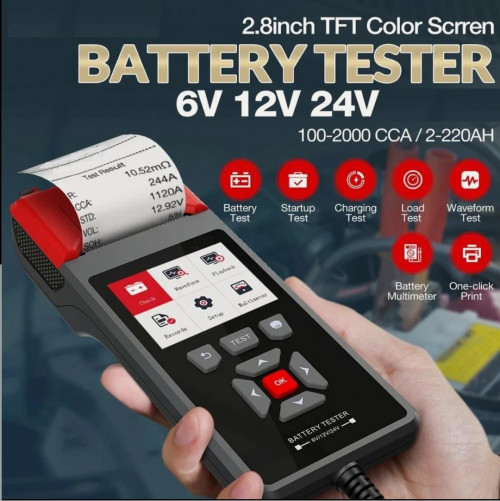 Тестирует АКБ 6В, 12В, 24В. Поддержка следующих видов АКБ: обычных залитых кислотных, EFB, с плоскими пластинами AGM, спиральные, гелевые и глубокого разряда.